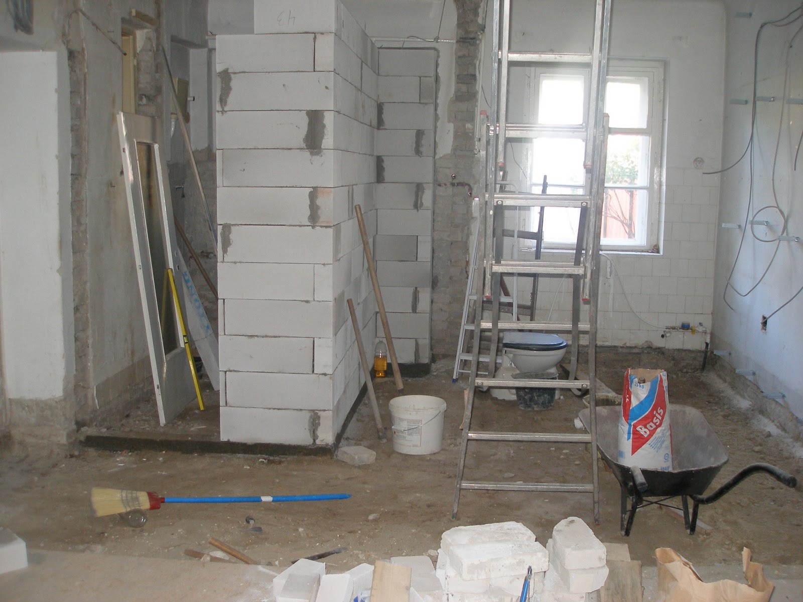 | Az átméretezett fürdőszoba betonozása |